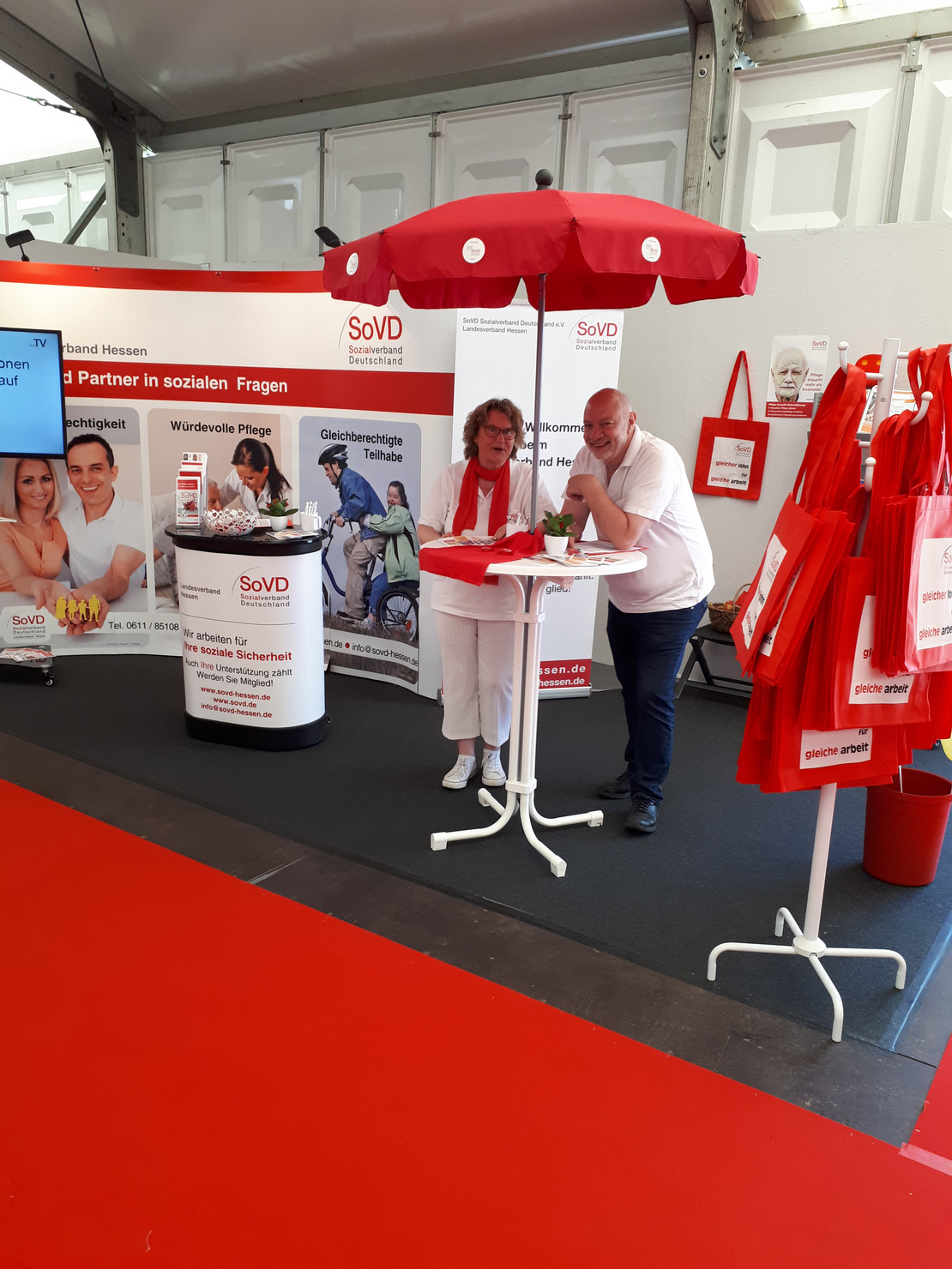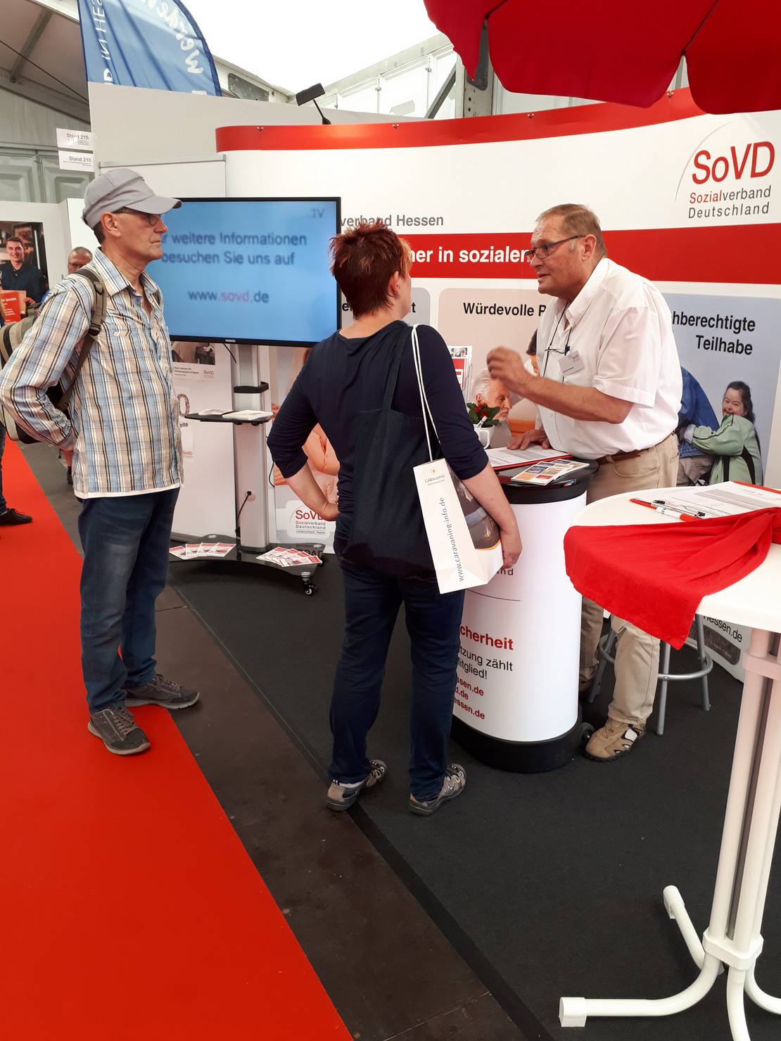 Wie schon im letzten Jahr engagierten sich Teams aus verschiedenen Kreisverbänden an einzelnen Tagen auf dem Stand des SoVD, um den Bekanntheitsgrad des Landesverbandes in Hessen zu erhöhen.