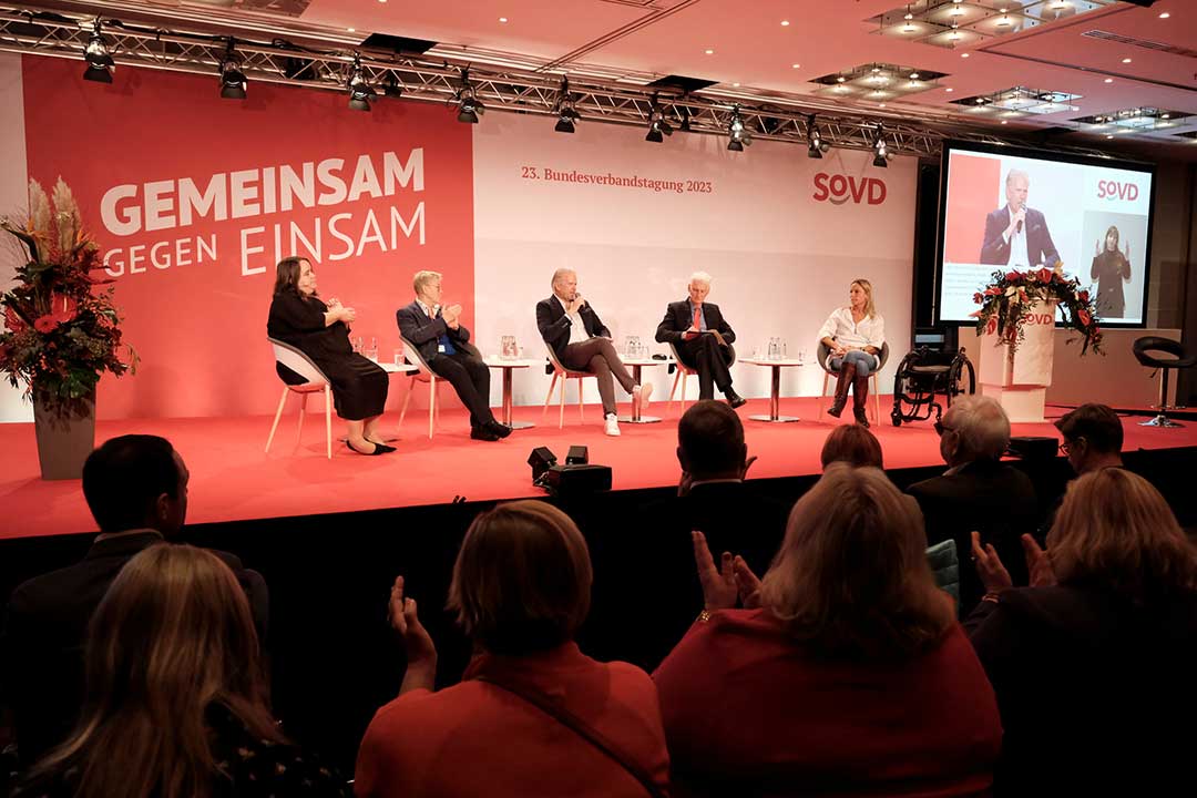 Mit einem Grußwort des Kanzlers, einer Rede von Familienministerin Lisa Paus und einer Podiumsdiskussion geht die SoVD-Bundesverbandstagung weiter.