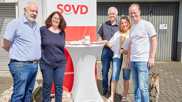 „Nach über viereinhalb Jahren Tätigkeit an der Erzberger Straße konnten wir unsere SoVD-Kreisgeschäftsstelle auch räumlich an das erweiterte Angebot anpassen“, freute sich Schulz, der den SoVD-Ortsverband Obertshausen 2018 wiederbelebt hatte. Für Rollstuhlfahrende und Menschen mit eingeschränkter Gehfähigkeit ist die neue Geschäftsstelle über einen großen Aufzug gut erreichbar. Ein lichter Beratungsraum, ein modern ausgestattetes Büro, in dem SoVD-Sekretärin Yvonne Hartwig tätig ist sowie ein großes Sitzungszimmer bieten ausreichend Platz für das Dienstleistungsangebot des in Hessen rasch wachsenden Sozialverbandes.