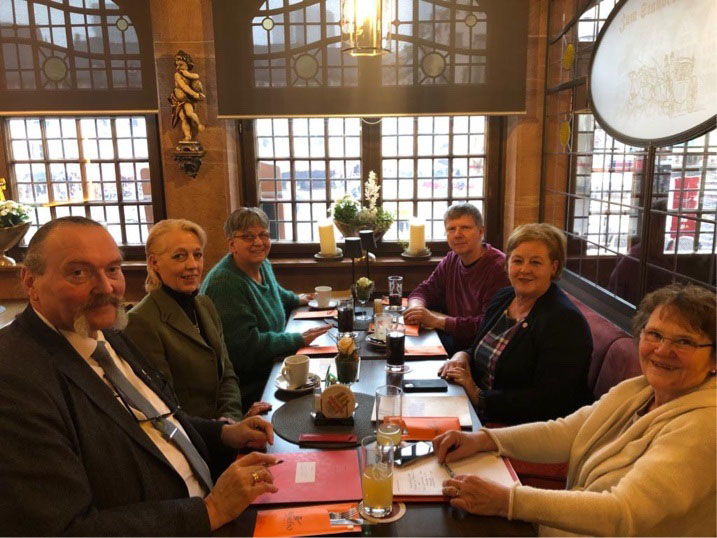 Man traf sich in Frankfurt und erfuhr, dass Michaela Engelmeier auch Bezüge in die „heimliche“ Landeshauptstadt Hessens hat. Für das ursprünglich in der wirklichen Landeshauptstadt Wiesbaden verabredete Treffen wäre es für einige Teilnehmer*innen zu weit gewesen, erfuhr Michaela Engelmeier, die sich dabei ein Bild machen konnte, wie groß das flächenmäßig oft unterschätzte Hessen wirklich ist.