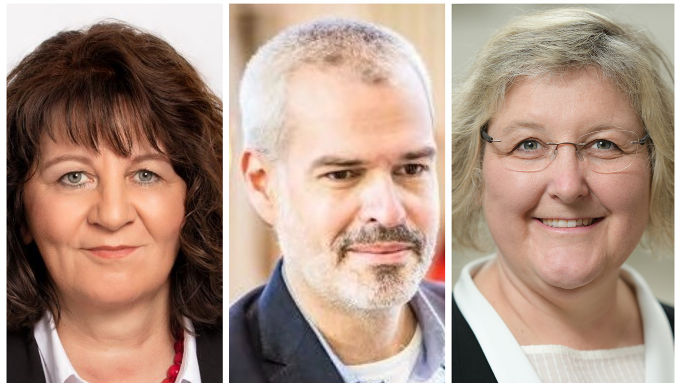Martina Stamm-Fibich, Heike Springhart und Marc Ziegenbein (v.li.) sind am in der Sendung am 25. Januar zu Gast.