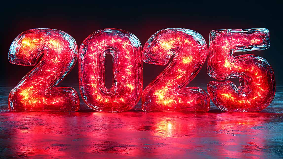 Jahreszahl 2025 mit buntem Licht