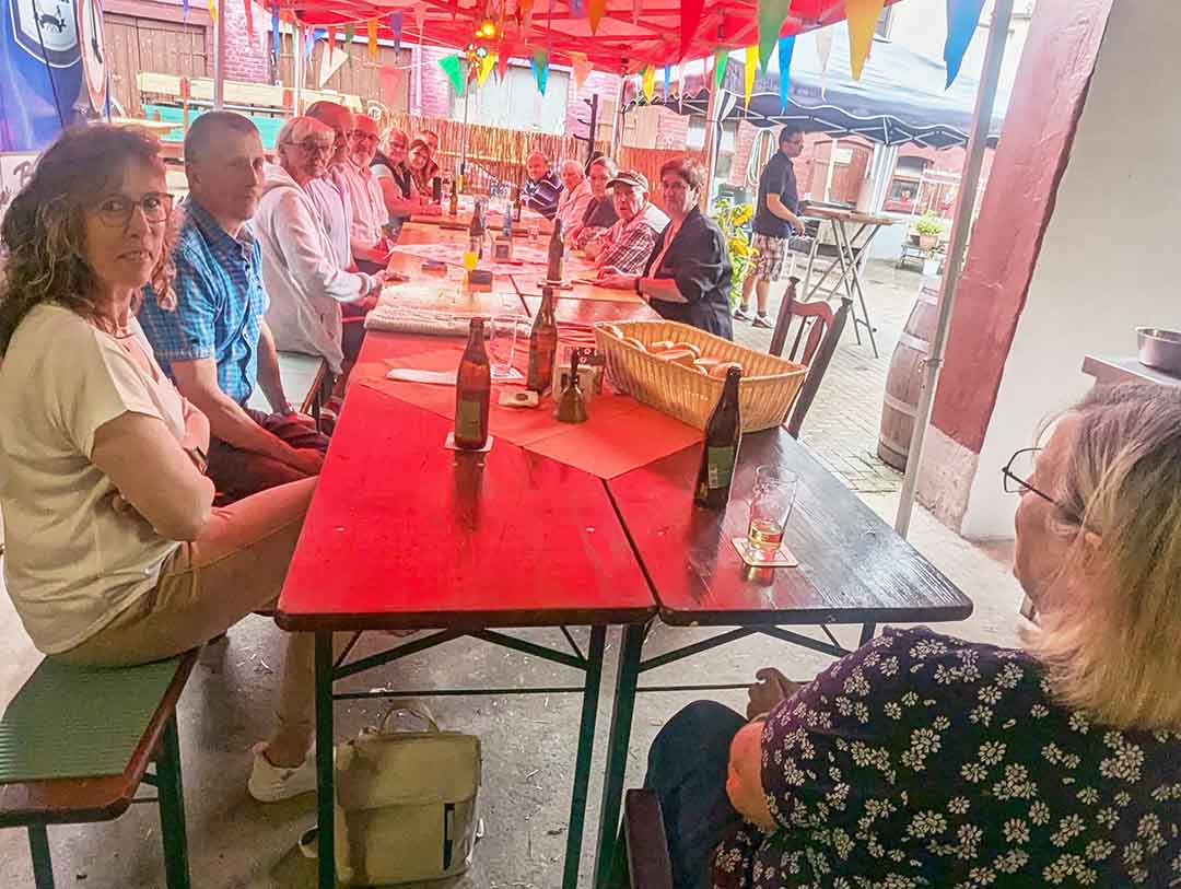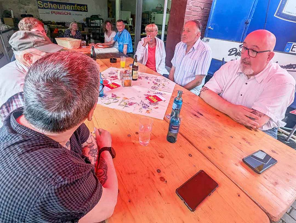 In der Scheune des Landwirts und SoVD-Mitglieds Jürgen Gümpel freuten sich die Besucherinnen und Besucher über Kaffee und Kuchen, aber auch über die regendichten Zelte, die der Gastgeber wegen des unbeständigen Wetters aufgebaut hatte. Kreisverbandsvorsitzende und Landesschatzmeisterin Marita Schliephorst hatte neben den netten Begrüßungsworten und dem Dank an die Gastgeberfamilie auch einige Mitbringsel wie Kugelschreiber, Notfall- und Tablettendosen sowie Postkarten des SoVD im Gepäck, die reges Interesse fanden. „Das Fest ist eine gute Gelegenheit, um Austausch zu pflegen und unseren Mitgliederinnen und Mitglieder direkt zu begegnen“, freut sich Schliephorst. Seinen Abschluss fand das gesellige Beisammensein mit Gegrilltem und selbst gemachten Salaten.