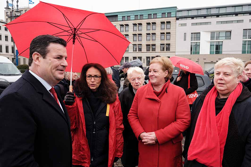 Der SoVD beteiligte sich daher am Equal Pay Day an der Aktion des Deutschen Gewerkschaftsbundes (DGB) am Brandenburger Tor in Berlin. Auch Arbeitsminister Hubertus Heil (SPD) war vor Ort.