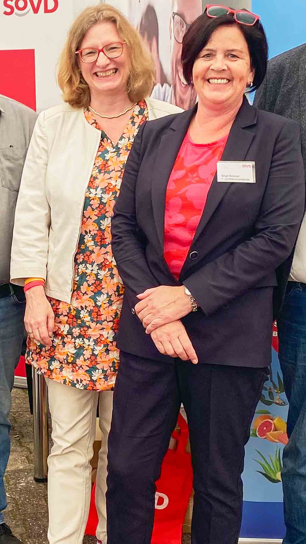 Auch Landesvorsitzende Birgit Kömpel reihte sich in die Schar der Aktiven ein, die das Gespräch mit den Besucherinnen und Besuchern der Verbrauchermesse suchten. Katrin Hechler, seit Januar Staatssekretärin im Hessischen Ministerium für Arbeit, Integration, Jugend und Soziales, fand an Christi Himmelfahrt ebenfalls den Weg zum SoVD-Stand und lobte die Arbeit des Landesverbandes.