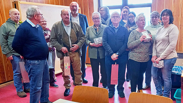 Die 1. Kreisvorsitzende verteilte den neuen „teilweise alten“ Vorstandsmitgliedern ein kleines Präsent, Blumengestecke für die Damen und Wein für die Herren und dankte dem neuen Vorstand für die Bereitschaft, erneut ein Amt anzutreten. Anschließend wurde noch ein Foto für die Zeitung angefertigt.