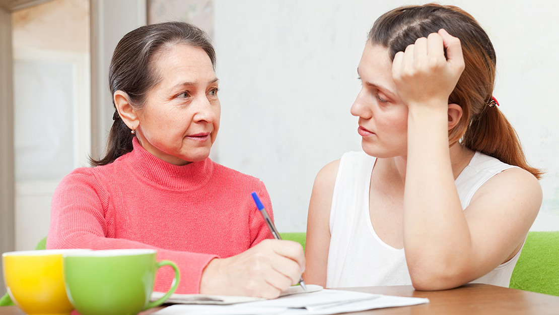 Eine Frau steht am Tresen einer Arztpraxis und erhält Unterlagen.