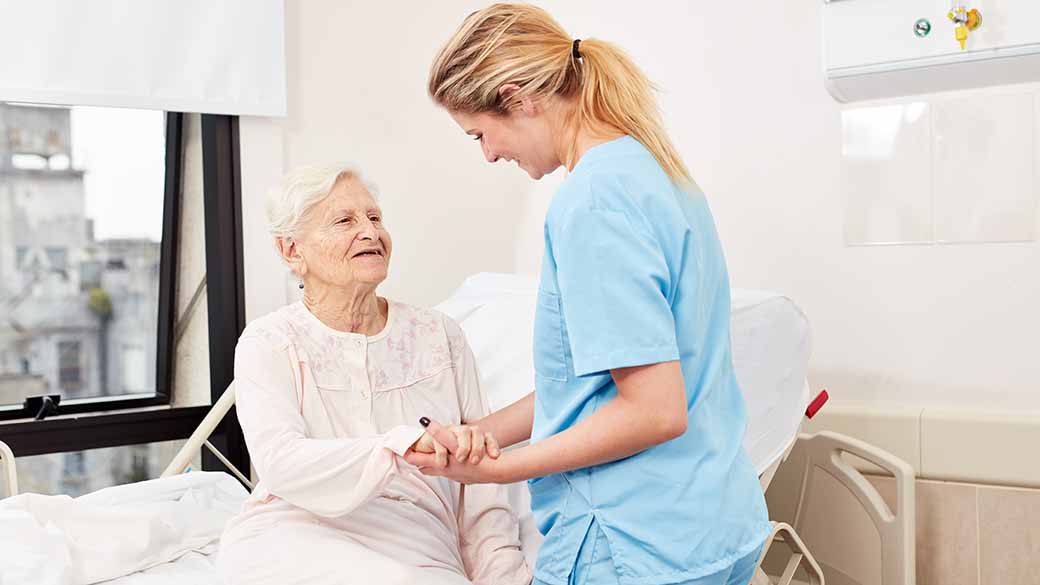 Älterer Mann bekommt von einer Ärztin eine Impfung in den Arm.