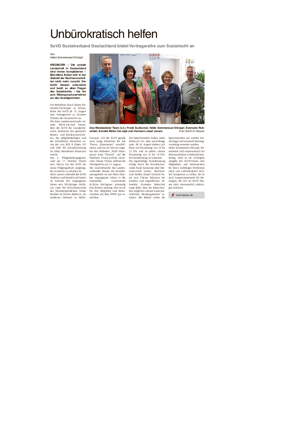 Wiesbadener Wochenblatt, 1. August 2018Unbürokratisch helfen